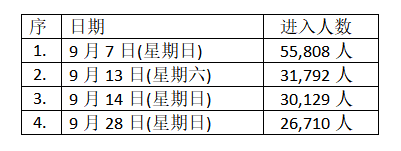 在这9月份期间,前来瞻仰朝拜此大金塔的各阶层的人数如下表: